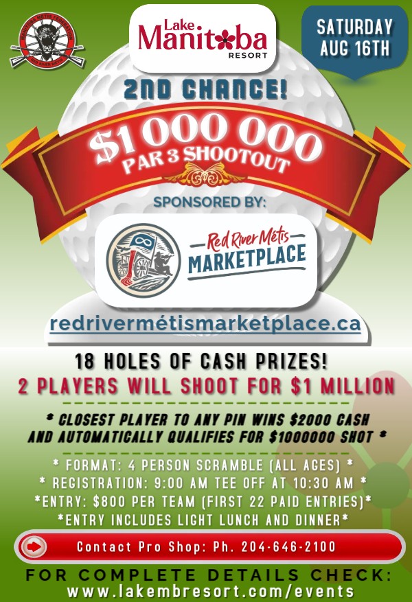 Get ready for one of the most thrilling events of the season at Lake Manitoba Resort! The Million Dollar Par 3 Challenge is back with an exciting new format, increased payouts, and the chance to take home massive cash prizes-including a shot at $1,000,000!